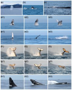 The surface behaviours of humpback whales were studied in the presence of a whale-watching vessel at Nosy Be (Madagascar) during whale-watching activities, in order to characterise the ethogram of these animals. Data were collected from July to October 2018. Of the 75 total trips, humpback whales were observed 68 times and different types of aggregations were observed: Groups (33.82%), Mother–calf pairs (30.88%), Singles (27.94%), and Mother–calf and Escorts (7.35%). Individuals exhibited the following behaviours: Spouting, Breaching, Head Slap, Tail Throw, Tail Slap, Peck Slap, Spy-hopping, and Logging. Sighting data were evaluated by comparing the observed aggregations with reported behaviours, and vice versa. Among the most commonly observed behaviours, Spouting and Peck Slap were exhibited more in Groups, while Breaching was exhibited by all of the associations, with the exception of Singles. In Groups of more than two individuals, little or no social nor aggressive behaviours were observed, probably due to a lack of needing to attract the attention of other individuals. This suggests that, during the breeding season, Nosy Be could represent a wintering and weaning ground for calves. © 2024 by the authors.