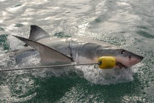 Described in the present report are documented attempts to tag and sample the white shark, Carcharodon carcharias (Linnaeus, 1758), along Italian coasts in the Mediterranean Sea, which took place near the Lampedusa Island in the lower Tyrrhenian Channel of Sicily, off the coast of Rimini in the Adriatic Sea, and of Civitavecchia in the central Tyrrhenian Sea. The project, activated in 2015, was aimed at tagging and sampling specimens of the white shark in order to collect data useful to implement conservation strategies in the Mediterranean Sea. Despite four tagging attempts made in 2017, 2018, 2021, and 2022 with 288 total hours of baiting activity and the use of 1030 kg of chum, no white sharks or any other shark species were sighted.